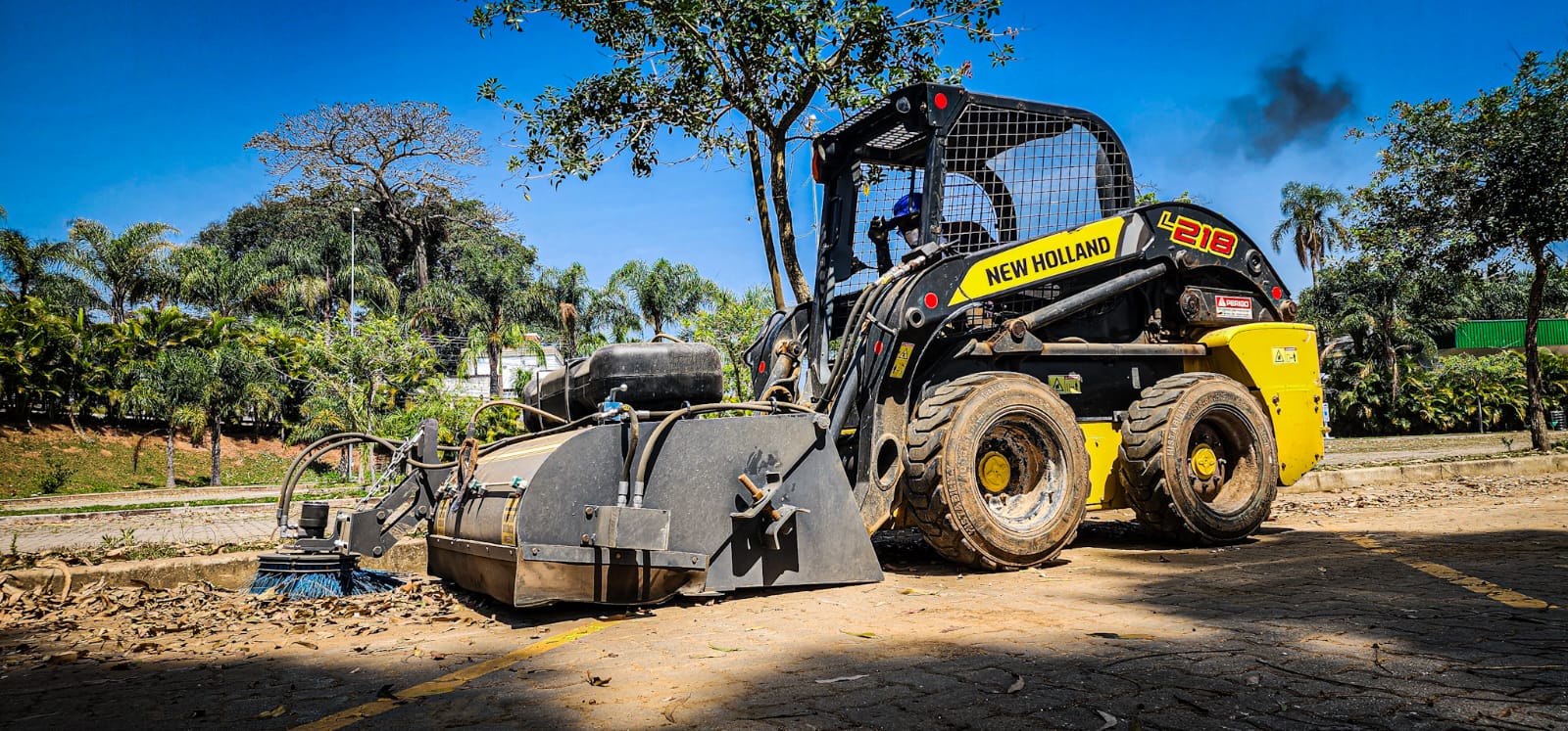 Além de realizar a varrição ela recolhe todo o material quem pode ser transportado e despejado no local desejado, esta operação aumenta o desempenho das atividades e reduz o custo com insumos e mão de obra.